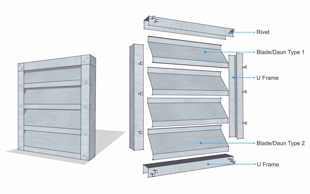 Produk jalusi merupakan produk non-standar yang dapat disesuaikan dengan kebutuhan lapangan. Jalusi dapat difungsikan sebagai ventilasi maupun variasi fasad bangunan dengan pilihan warna menarik.